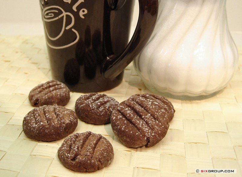 Mehl , Kakao und Kaffeepulver mischen. Butter mit Puderzucker und dem Mark einer Vanilleschote unterkneten. Teig in Folie einschlagen und ca. 60Min. kalt stellen.